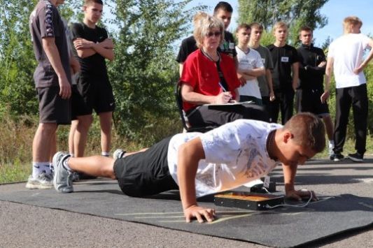 Юноши и девушки выполняли испытания комплекса: подтягивания и отжимания, наклон вперед из положения стоя на гимнастической скамье и поднимание туловища из положения лежа на спине, бег на короткие и длинные дистанции, челночный бег, а также прыжки в длину с места. Следили за правильностью выполнения упражнений строгие, но справедливые судьи - тренеры спортивной школы "Прометей".